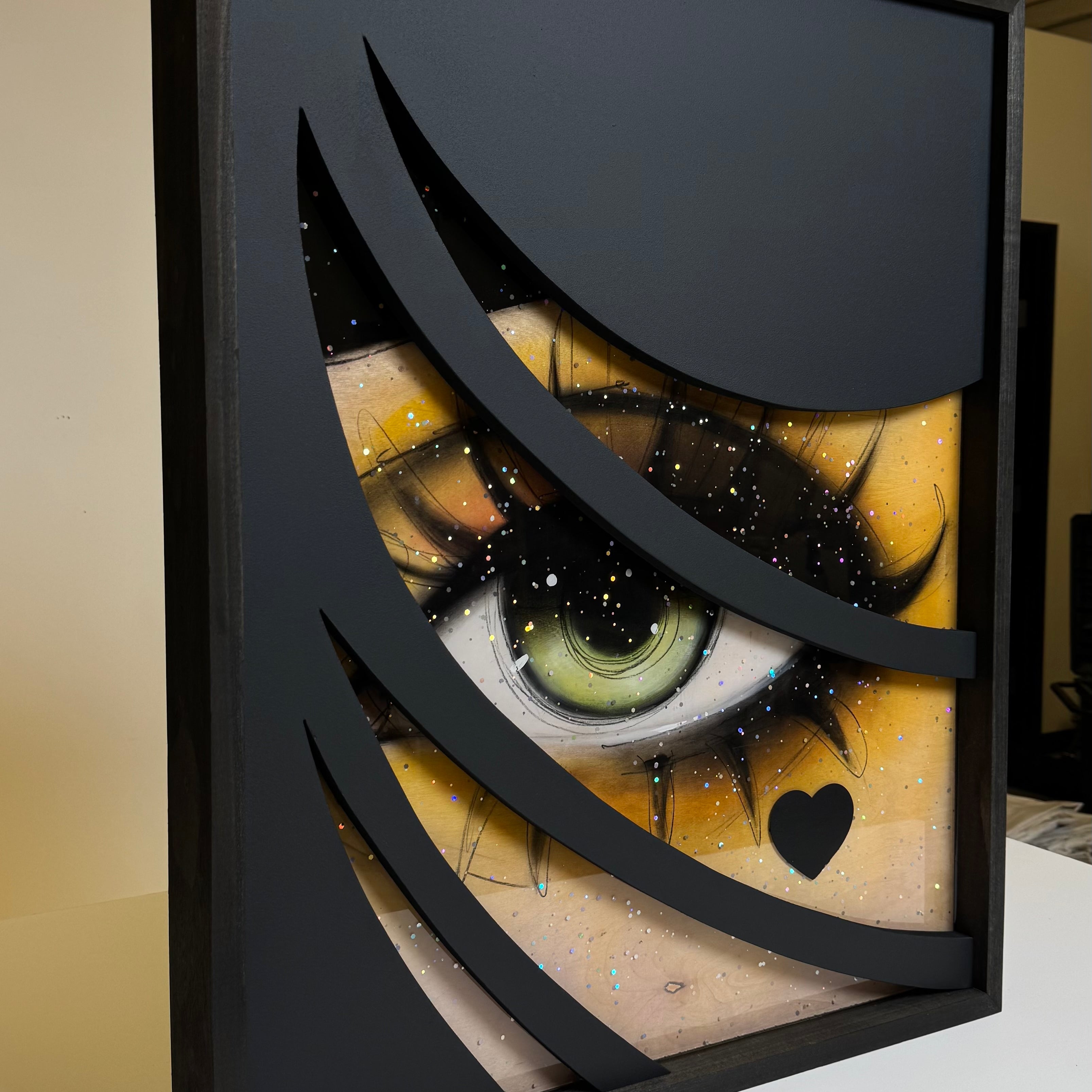 charcoal, pastel, acrylic, glitter, mdf on birch