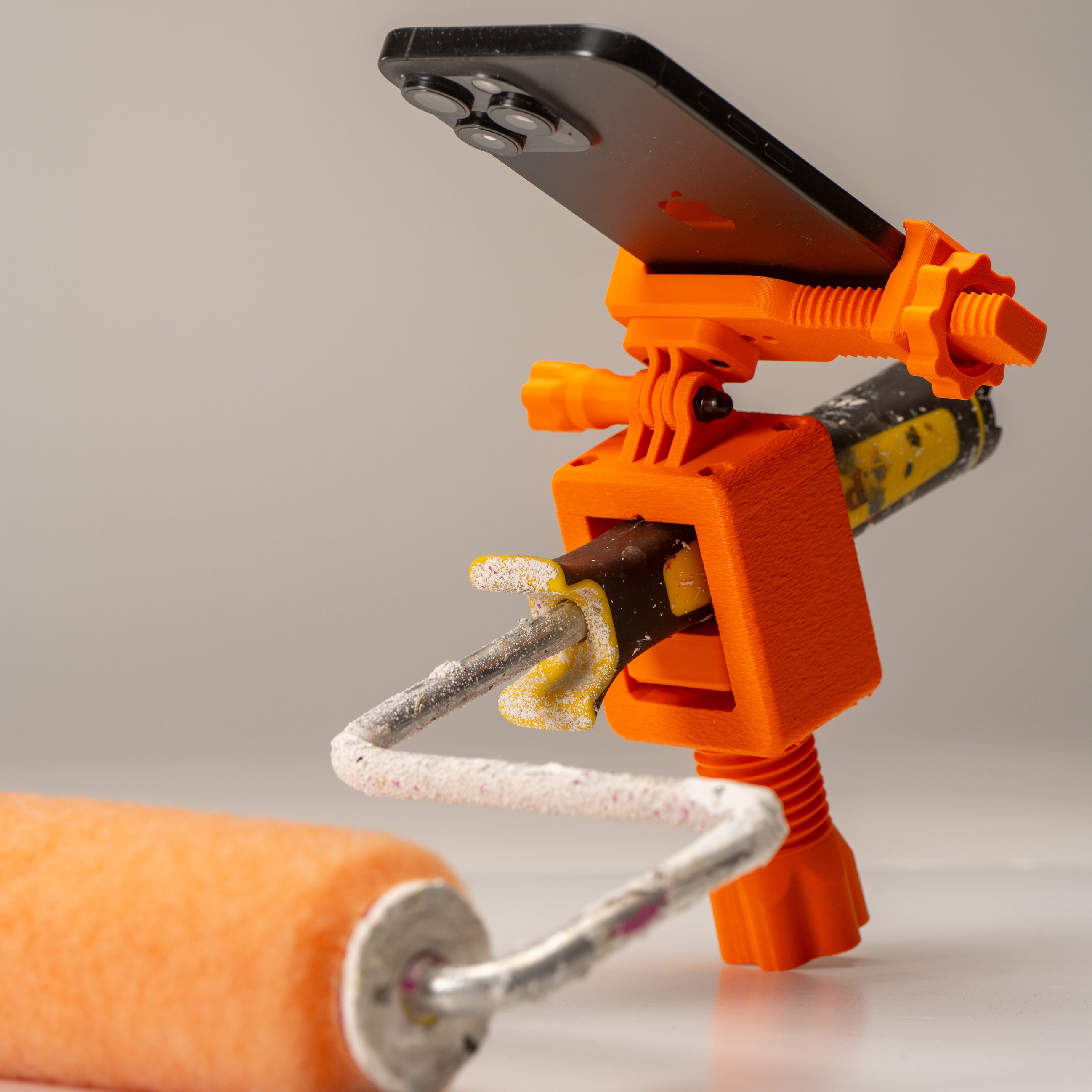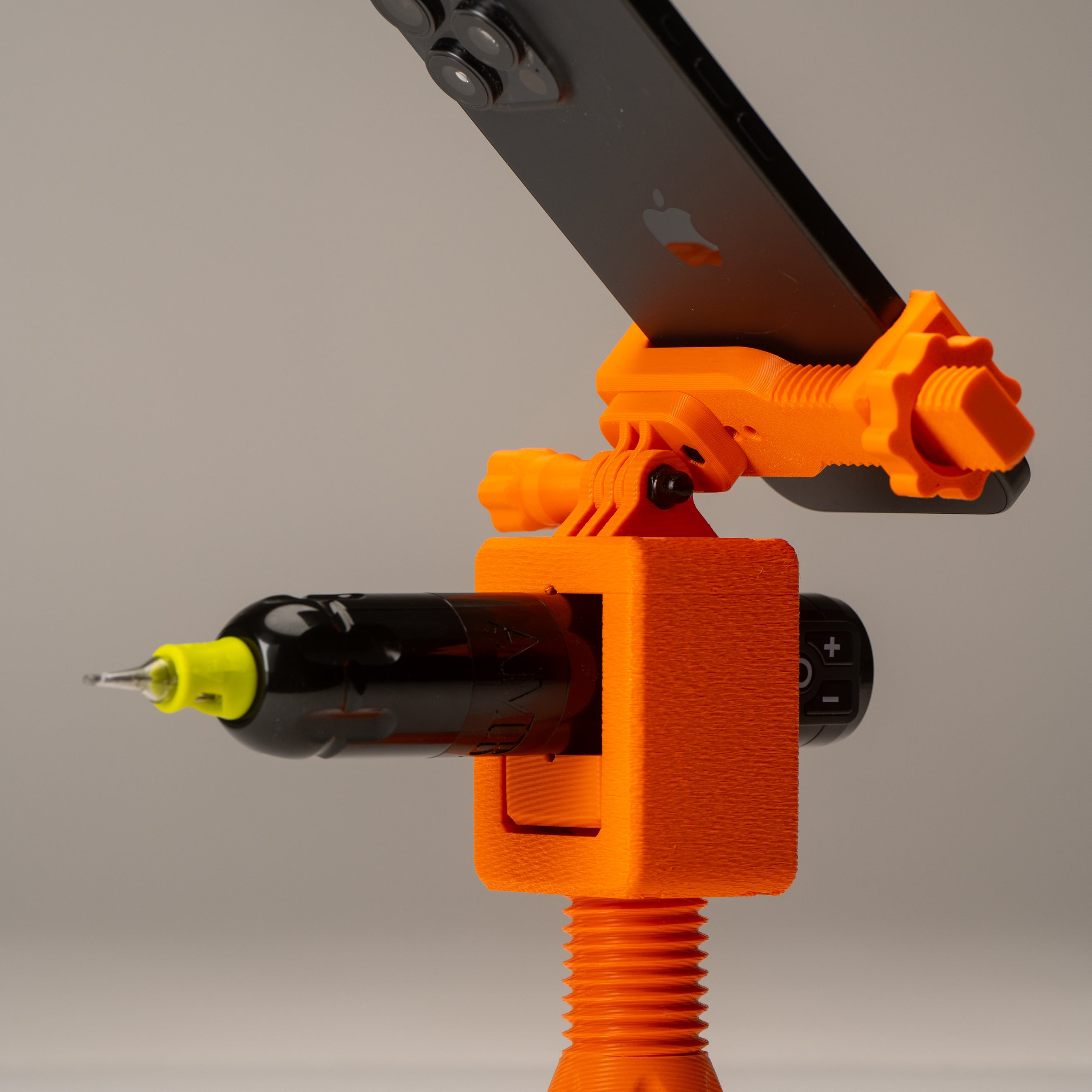 One clamp holds the tool, another locks in your phone, GoPro, or DJI for stable recording.
